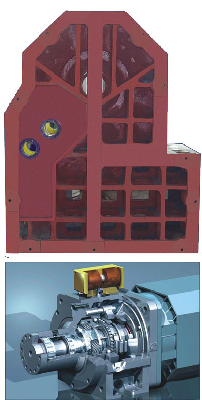 ■ 車(chē)身橫梁、底座均采用優(yōu)質(zhì)樹(shù)脂砂鑄鐵,厚肋板及多層箱體結構,經(jīng)回火及時(shí)效處理,確保高剛性及穩定性; ■ 立柱橫梁均采用寬雋星導軌,承載能力及抗震性好; ■ 橫梁承載導軌采用鑲鋼導軌,滾滑導軌,滾滑符合結構,耐用,摩擦阻力??; ■ 滑枕采用優(yōu)質(zhì)合金鋼鍛件,材質(zhì)致密耐磨,強度高; ■ 精度研磨大齒輪,配合德國ZF變速箱,使機床兼具高速型能及大扭矩輸出。 |