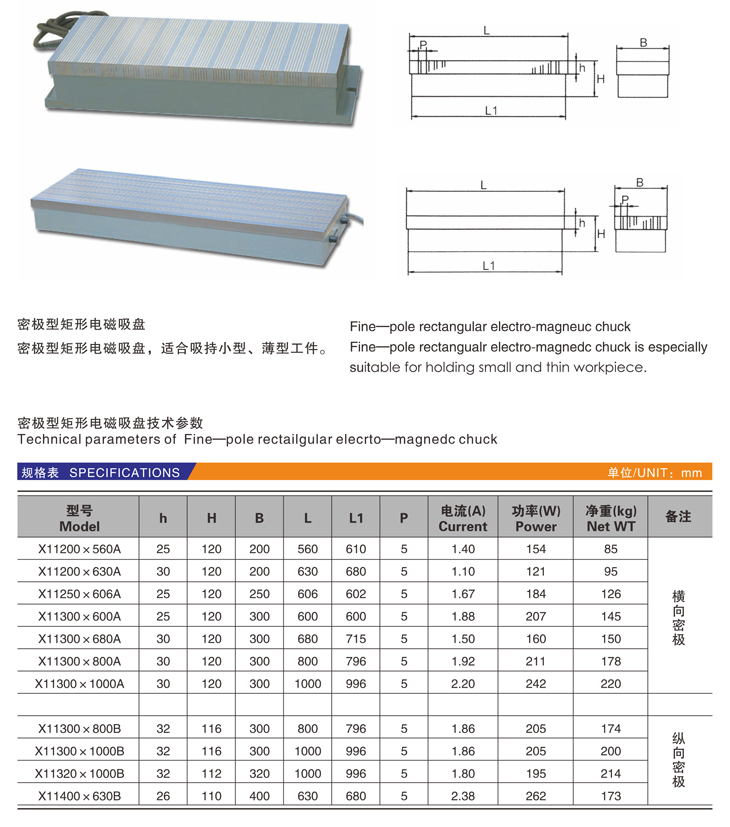 X11-A X11-B 密極型矩形電磁吸盤(pán)