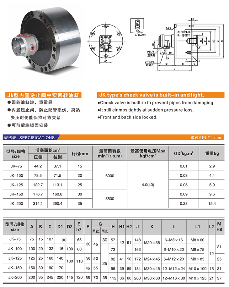 JK 內置逆止閥中實(shí)回轉油缸
